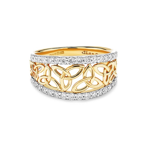 The 14K Gold Lab Diamond Irish Celtic Ring is a stunning piece that blends timeless heritage with modern elegance. Crafted in solid 14K gold, it features a bold trinity knot design, a symbol deeply rooted in Irish culture, representing eternity, unity, and spiritual growth. Framed by two rows of sparkling lab-grown diamonds, the intricate Celtic pattern shines with brilliance and sophistication. This ring offers both meaning and beauty, making it a treasured choice as a personal keepsake or a heartfelt gift that carries the spirit of Irish tradition.