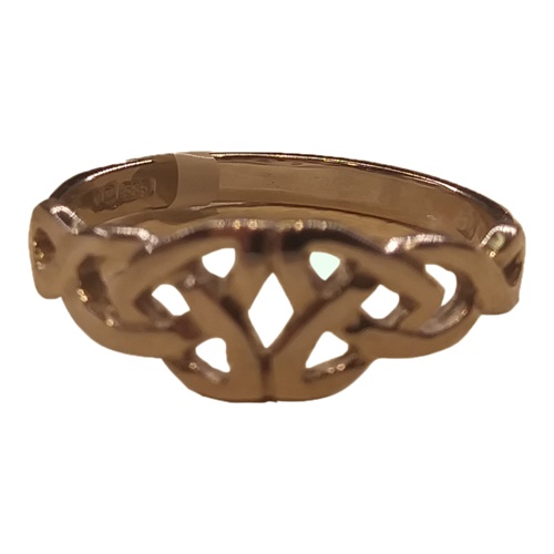 This beautifully designed 14K white gold ring features an two trinity knot coming together at the center. Crafted in DunLaoghaire Ireland by the Shannon Brothers.