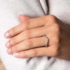 Shanore's 14k White Gold Lab Grown Diamond Round Halo Celtic Wedding Ring is a spectacular jewelry piece. The band is of medium width with a wave curve in the center. A row of glittering white lab-grown diamonds adorns half of its upper surface. The wave Links to the Irish seas and the ancient Celtic heritage. White gold represents the purity of emotions. Diamonds suggest a forever bond between two people in love. Our ethically sourced lab-grown diamonds emphasize an Eco-friendly lifestyle. Keep this exquisite wedding band in your store for environmentally aware buyers. You can also order a splendid halo and solitaire engagement ring to sell alongside this wedding band as a set. Comes Presentation Boxed.