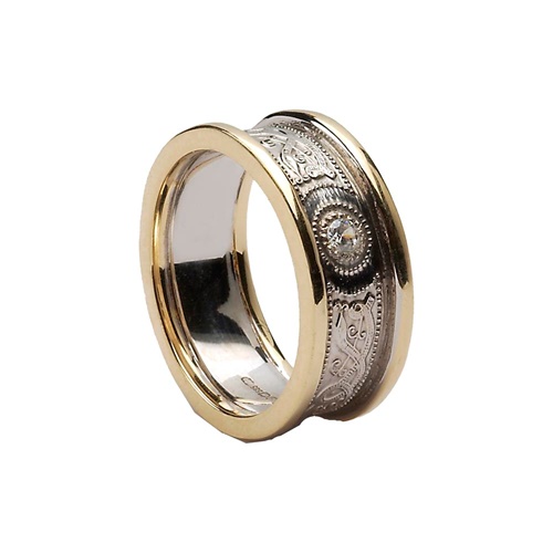 7 mm Warrior Shield Diamond Set White Gold Yellow Gold Trim