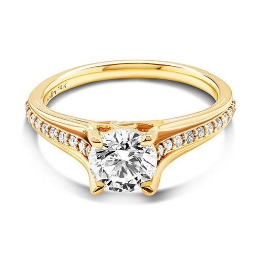 Shanore's 14kt Yellow Gold Trinity Knot Engagement Ring with 2ct Lab Grown Diamond gives the classic solitaire an Irish interpretation. The focal point of the ring is a flawless and sparkling 2ct lab-grown white diamond. It is set on a mount with two Celtic trinity knots. Tiny white lab-grown diamonds enhance the ring's shoulders on either side of the large diamond. The Celtic trinity knot signifies life, death and rebirth. The solitaire diamond proclaims a love that’s forever. Yellow gold strengthens precious bonds. Lab-grown diamonds indicate the wearer’s ecological awareness. Add this ring to your store’s inventory for buyers looking for greener alternatives. You can also order a matching wedding ring to sell as a set. Comes Presentation Boxed.