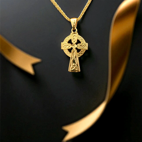 A traditional celtic cross of 14K gold vermeil
