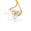 The Gold Vermeil White Enamel Celtic Trinity Knot Bracelet is a sophisticated accessory. In its center is a three-cornered trinity knot with white enamel within golden edging. Then, a cubic zirconia stone glitters in its center. Next, a slider closure chain helps adjust the bracelet to the wearer’s wrist size. This vermeil gold jewelry is a precious gift for a chic woman.