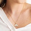 This Shamrock Necklace is made from a solid 925 sterling silver base, coated with a dense layer (2.5 microns) of genuine 14k gold. The pendant features a delicate three-leaf Shamrock minutely studded with dainty white CZs and a sturdy plain bale. It also features a beautiful and delicate chain (18” + 2" extension). This neither-too-big nor-too-small luck talisman is full of brilliance that every woman will treasure.