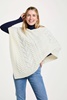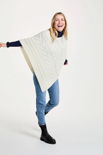 Aran Woolen Aran Triangular Poncho, Cream