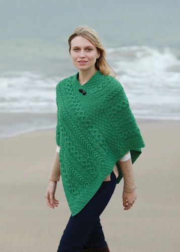 Aran Woolen Mills Merino Wool Button Poncho, Kiwi