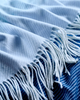 Echoing the shifting tones of sea and sky, this lustrous cashmere blend throw moves from pale mist to deep denim in a serene ombré. Crafted at the Avoca Mill, it offers a soft, fluid drape and a gentle sheen, adding a sense of calm and contemporary elegance to your favourite spaces.