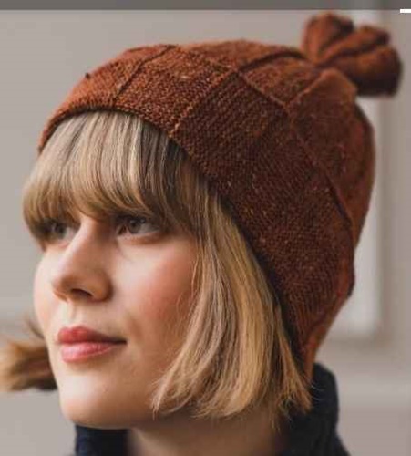 Soft Merino wool 'bobble' style hat. Shown here folded back into a beanie. So soft does not feel like wool. One size fits most.