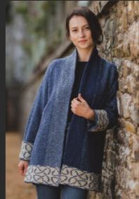 Easy to wear, this is a loose fitting style with reversible cuffs which allow you to fold back and shorten the sleeves. There are no buttons or fastening so simply wear it open or if you should like, you can pair with a brooch pin to the fasten the jacket. Made from 100% soft merino wool.