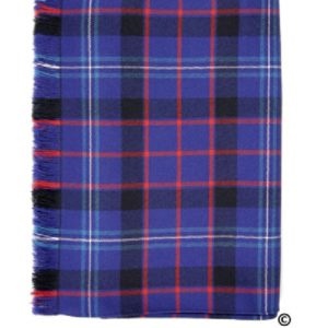 Made from light weight (10 oz) 100% Pure New Worsted Wool, our scarf is hand cut and sewn. Each one is centered on the tartan and is perfectly matched. The tight twill weave produces a tartan of extraordinary clarity which makes a colorful accessory to any outfit. Ideal as a gift or for yourself, whether wearing clan colors or simply accessorizing, the scarf is suitable for any occasion. Approximately 10″ x 59″.