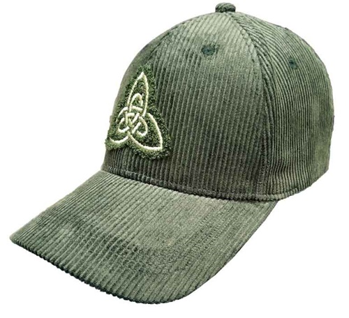 Green celtic knot baseball cap. Corduroy with adjustable strap