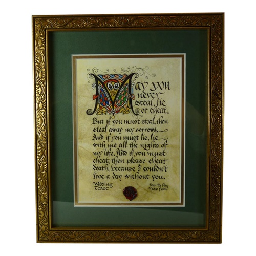 May you never steal, lie, or cheat, but if you must steal, then steal away my sorrows, and if you must lie, lie with me all the nights of my life, and if you must cheat, then please cheat death because I couldn't live a day without you."