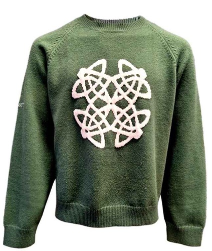 Traditional Craft Heritage- Green sweater with white Celtic Knot