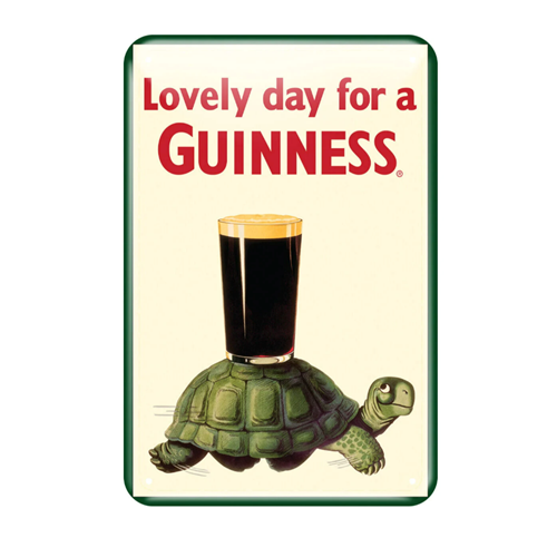 The Guinness Toucan Wall art is from the Guinness Nostalgic Collection, is 12"L x 8"W with the toucan sitting on a weathervane balancing a pint of Guinness on its beak with the slogan, Lovely time for a Guinness and is made of metal.