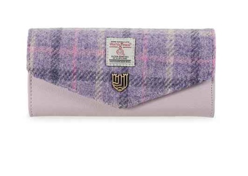 Introducing The Large Clasp Purse—a grander expression of style. Its outer layer, a fusion of Harris Tweed® and microfibre leather, is secured with a reliable metal popper fastening, revealing a capacious microfibre leather interior.