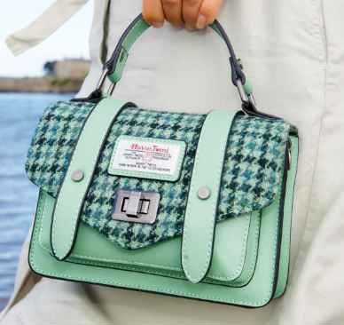 Islander Mini Satchel Bag with HARRIS TWEED - Green Dogtooth