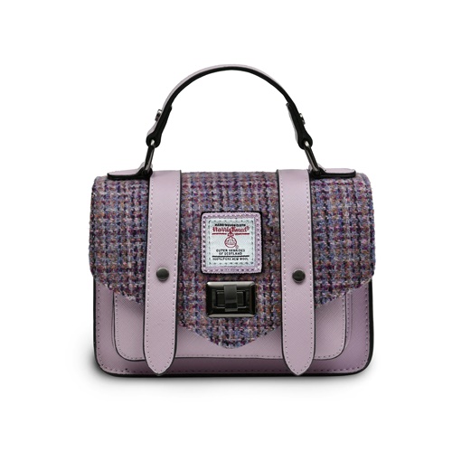 Islander Mini Satchel Bag with HARRIS TWEED - Violet Mini Dogtooth