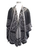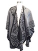 This classic shawl is a one of kind. It is inspired by the Book of Kells knotwork and trinity knots. It is reversible with a rounded bottom. Charcoal and Black. One size fits most. 100% Jacquard Woven Birdseye This shawl is perfect for dressing up or down. Throw it on with jeans or a dress and you're all set! It is not just great for a night out but also perfect for cozying up with a good book.