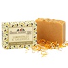 Lemongrass & Calendula Natural Soap is a soap that's a little two-faced. It's zesty, uplifting scents of lemongrass and may change essential oils belie the calming herbs within. This Lemongrass & Calendula Natural Soap is infused with skin soothing extracts of chickweed herb, calendula and Ayurvedic turmeric. A powerfully gentle soap.