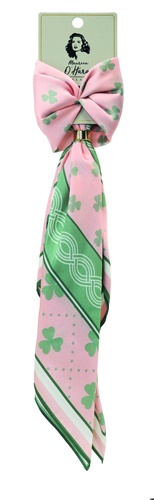 Inspired by Maureen O'Hara in Quiet Man. A fashion scarf featuring soft pastel green shamrock leaves with pink and cream celtic border.