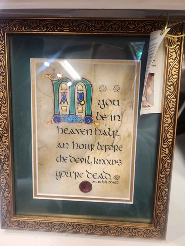 It states that "May you be in heaven half an hour before the devil know you're dead."