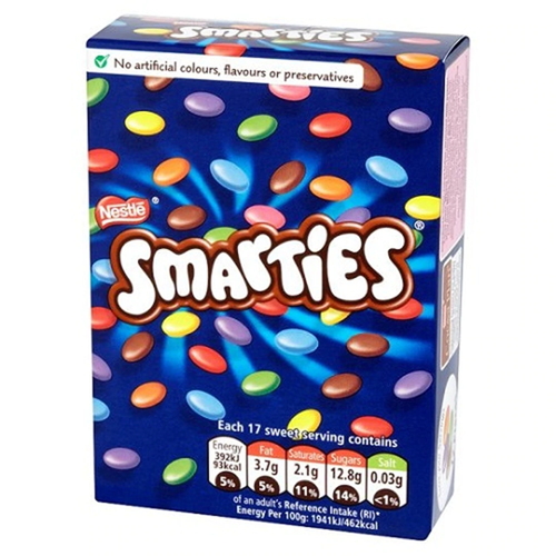 Nestle Smarties Carton is filled with the colorful, candy-coated chocolate discs that are delicious to savor and fun to munch upon. Made with delectable Nestle milk chocolate that is covered in a crispy shell, these Smarties not only satisfy chocolate cravings on every level of intensity, but also make a crispy and colorful addition to homemade chocolate chip cookie recipes.