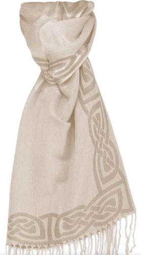 This pashmina has a beautiful Celtic Knotwork style design from The Book of Kells along each side. It makes a great gift for any special person or yourself.