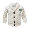 Wrap your little one in warmth and timeless style with this beautifully crafted knit cardigan. Designed with classic Aran cable patterns, it reflects traditional Irish knitwear charm while offering everyday comfort. The soft cream shade adds a refined touch, making it easy to pair with any outfit. Perfect for layering in cooler weather, this cozy cardigan is ideal for both casual wear and special occasions, keeping your child comfortable and effortlessly stylish.