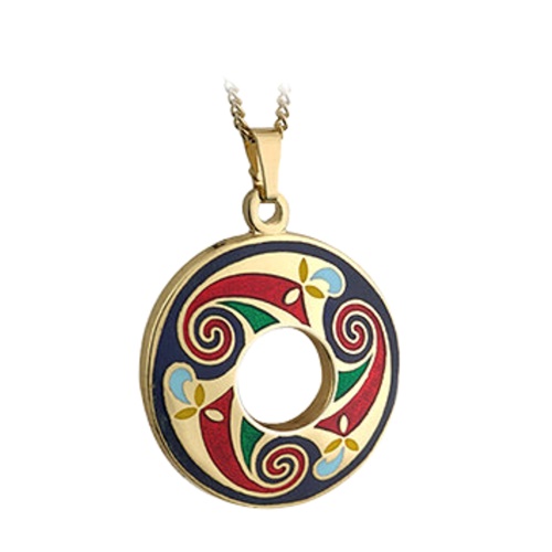 Solvar Gold Plated Tara Medium Round Pendant in Blue is a striking expression of Celtic heritage and timeless symbolism. Crafted with a refined gold-plated finish, this elegant pendant features a classic round blue design centred with the iconic Trinity Knot, a powerful Celtic symbol representing unity, love, and eternity. The contrast between the rich blue background and the warm gold tone creates a bold yet sophisticated look that stands out beautifully.