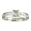 Beautiful setting is 14K white gold and features diamonds on the front half of the shank.